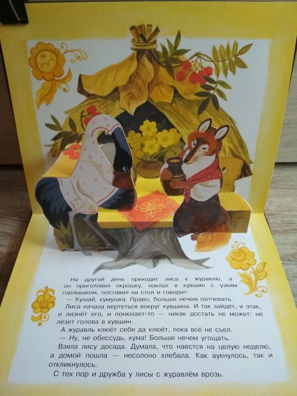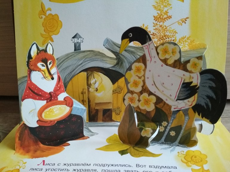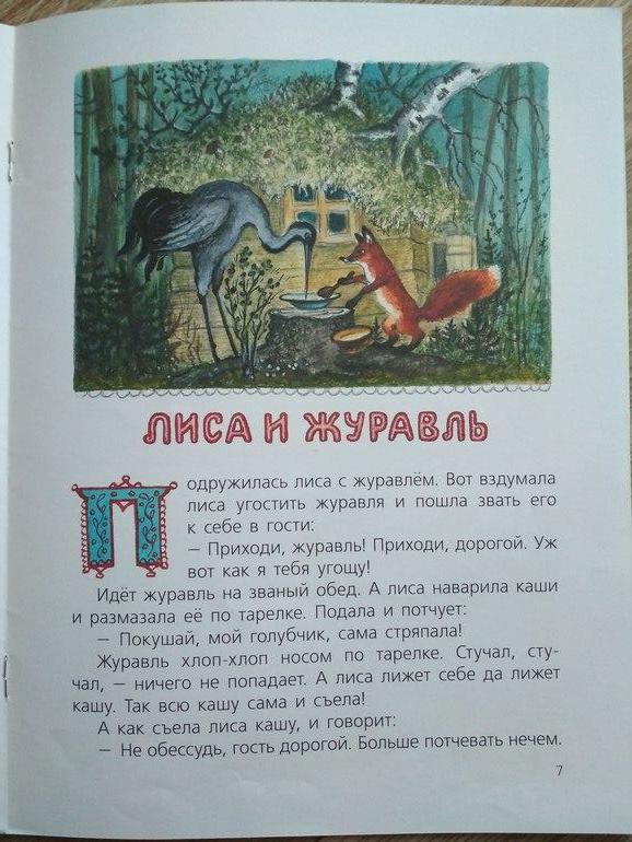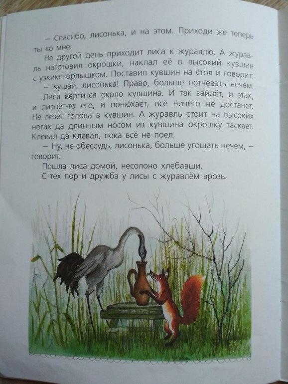 В тексте сказки Лиса и Журавль есть два момента, за которые сразу взгляд зацепился.