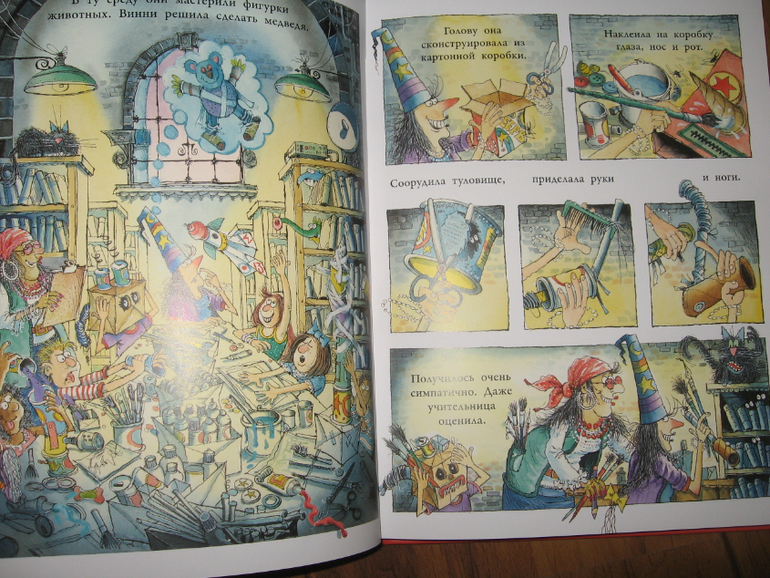 Эта книга стала приложением к подарку Алисе на день рождения. Собственно она первая этой серией книг и заинтересовалась, когда увидела рекламу издательства в книгах про Земляничную Фею. А Егор проникся уже позже, после того, как я стала читать ее Алисе. Мы ее несколько дней читали перед сном. Потом сын стал читать ее сам: и подряд, и выборочно некоторые истории. А уж картинки рассматривать и вообще можно бесконечно. Книги про Винни и Вильбура действительно специфичны, поэтому я могу понять и тех, кому истории эти пришлись не по вкусу. Я книгу воспринимаю исключительно, как возможность разбавить "правильные" книги чем-то новым и хулиганистым. Но мы решили брать только три книги автора Валери Томас, а другого автора пропустить. И для Егора, и для Алисы это просто смешная книга, такая же как, например, Николы Кухарски "Как устроены животные", но на чтение других историй, наличие "легонькой" литературы у нас никак не влияет.