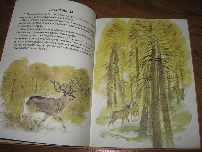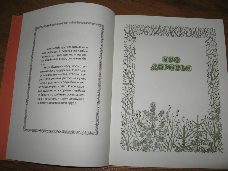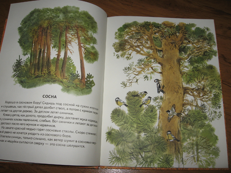 Эта книга когда-то была у меня в детстве. Правда обложки я у ней не помню, от нее осталась к моменту моего чтения только середина. Поэтому долгое время я не обращала на эту книгу внимания, только случайно глянув на развороты, сердечко екнуло. Этой книге я рада вне зависимости от реакции детей. Эта книга была куплена для себя) Но и детям книга пришлась по душе. И картинки красивые, и тексты не сложные, и информация интересная. Хотя в книге нет какого-то сюжета, это просто коротенькие зарисовки из жизни животных, птиц, деревьев. Повествование очень спокойное, поэтому мы книгу читали перед сном. Конечно же перечитывать книгу постоянно Алиса, например, не просит, но зато рисунки рассматривает в ней регулярно. Егор же и сам уже читает те страницы, которые его заинтересовали. Пусть и не так много, как бы мне этого хотелось.