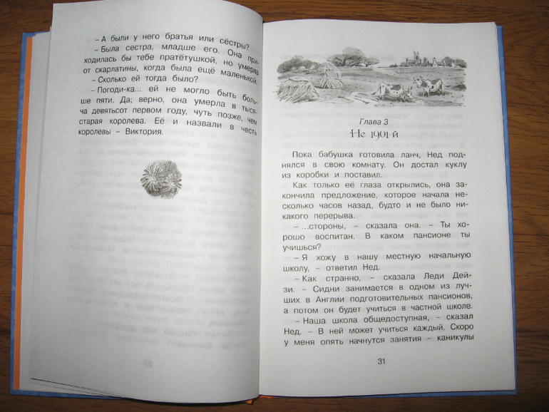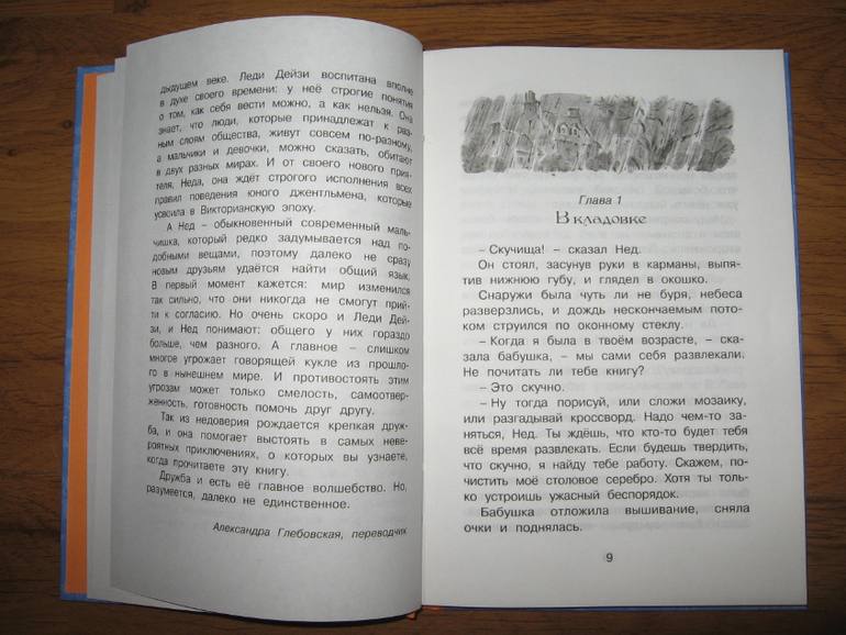 С цветными иллюстрациями не стала даже искать, купила такую, поскольку "Нос королевы" пока у нас не идет. Начинали уже дважды, видимо не то настроение. А вот эта книга попала в точку с первого раза. Прочитали за два вечера. Егор при этом прочил без него не читать. Когда перевернули последнюю страничку Алиса попросила начать книгу сначала, но у нас столько не прочитанного еще, что отложили пока историю про куклу. Ну и, конечно же, оба стали мечтать о такой живой игрушке, с которой можно общаться, которая много знает, а еще было бы здорово, чтобы кукла также принадлежала прапрабабушке и рассказала бы хоть что-то о истории семьи. Да и я бы от такой не отказалась, чего уж там)) Отсутствие ярких картинок совершенно не мешало чтению, нам достаточно было и сереньких, но с цветными было бы приятнее :) Хотя игры с куклами у Алисы не поменялись, она не стала к ним относиться трепетнее, новых игр тоже не возникло.