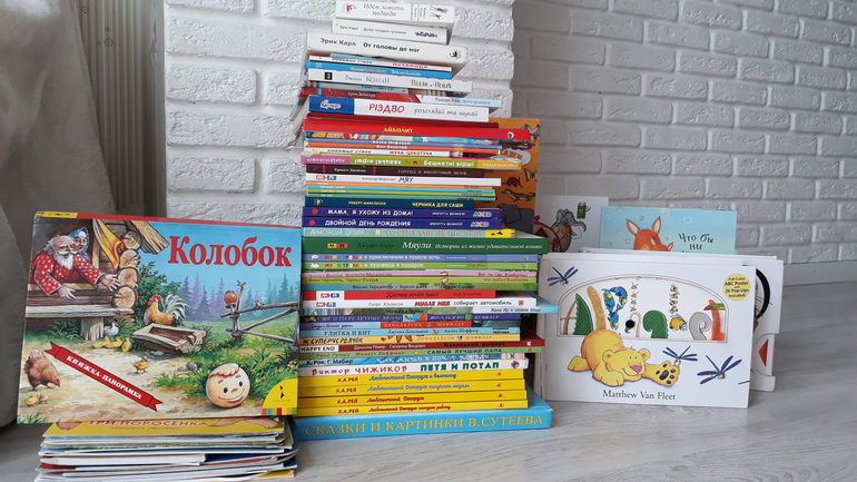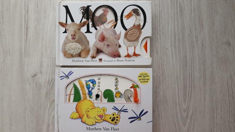 Книжки Мэтью Ван Флита "Зоопарк" и "Хрю"❤. В оригинале, не Зоопарк, а Алфавит. Раньше просто трогали, в этом месяце добавила русский текст и книга получила вторую жизнь :)