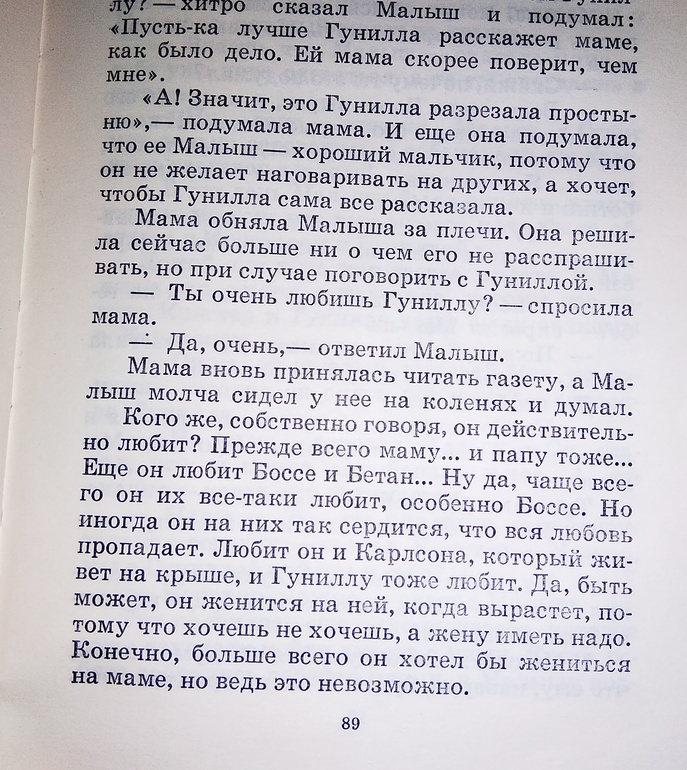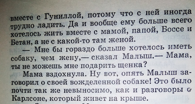 "Малыш и Карлсон" мы так и не приобрели в новом издании. Дедушка и бабушка прислали нам издание 1993 года, компактное, 3 повести в одной книге, иллюстрации черно-белые и их немного - перед сном читать мне детям удобно. Перевод Лунгиной. Первый раз данное произведение читали летом. Второе, нынешнее, прочтение существенно отличается: много вопросов возникает у ребенка, некоторые моменты подмечаю сама для себя в воспитании детей, нашем общении. Прочитана первая повесть.