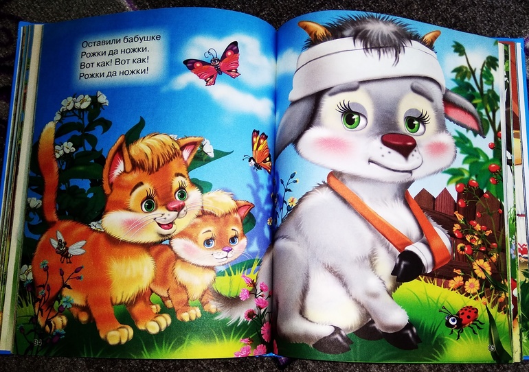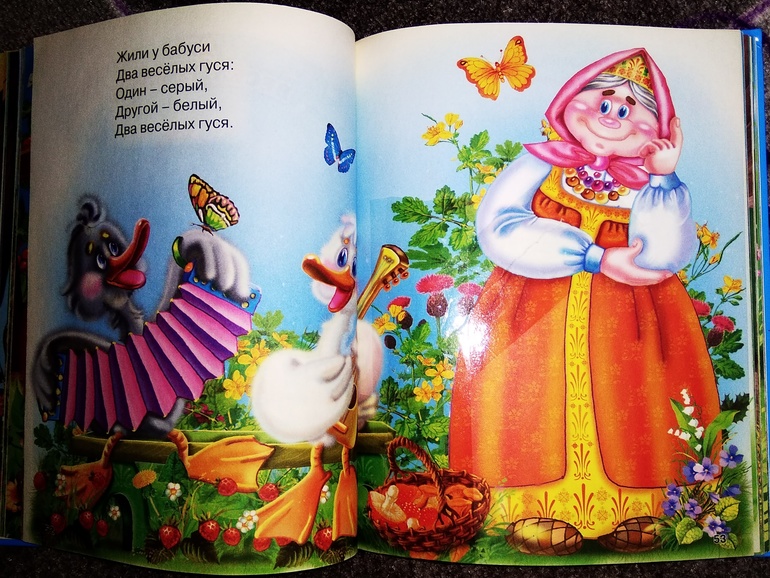 Полюбили песенку про козлика (благо на иллюстрациях козлик отделался меньшими последствиями, нежели в песне) и "два весёлых гуся":