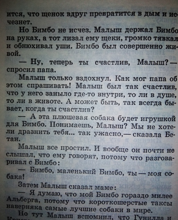 По какой причине Малыш просит маленького щенка? Ответ Малыша: "... у меня никого нет, даже собаки" - это чувство одиночества. Понимают ли это родители - да, понимают. По какой причине не торопятся заводить собаку? Возможно, потому что быть хозяином животного - большая ответственность? Что значит слово "ответственность"? Что можно сделать было, чтобы подготовить Малыша к появлению щенка в доме? Готов ли Малыш заботиться о маленьком четвероногому друге? Почему для Карлсона Малыш, не раздумывая, разбивает копилку и покупает "вкусные лекарства" для него? По какой причине Малыш готов смириться с мыслью о невозможности исполнения своего заветного желания? Почему, настраивая себя не думать о собаке в день своего рождения, Малыш столь эмоционально реагирует на подарок брата и сестры? Ожидали ли подобную реакцию Боссе и Бетан? Уместна ли оказалась их шутка? Как они ведут себя в этой ситуации? Да, признают свою ошибку и просят прощения. Замечательно, что все таки Малыша услышали и дали возможность почувствовать себя счастливым обладателем маленького щенка: