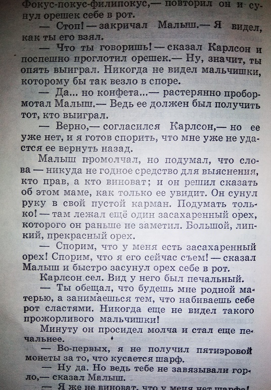В общем, "Малыш и Карлсон" для нас та книга, с которой хочется размышлять, переживать, радоваться и просто получать удовольствие от чтения. На фоне прочтения данной книги проще было разбирать эмоции по методике Шаманских "Монсики. Что такое эмоции и как с ними дружить".