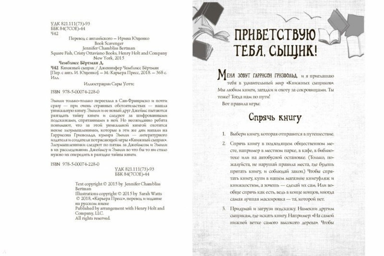 12-летняя Эмили очень рада переезду в Сан-Франциско, потому что здесь живет ее литературный идол: Гаррисон Гризволд, издатель книг и создатель онлайн-сенсации "Книжный сыщик" (игра, в которой книги прячутся в городах по всей стране, чтобы ее найти нужно разгадать шифр).