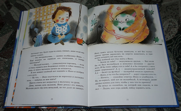 И только мальчик Янко взял, да и приютил зеленого кота. История эта закончилась самым волшебным образом, потому что "настоящее волшебство может открыться только чистой и бескорыстной душе".