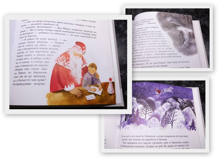 В общем, книга понравилась и мне, и детям. Однако, лично мне хотелось бы, чтобы автор лучше раскрыл некоторых второстепенных персонажей. Их в книге много, все они интересные - тут и Новогодний Переполох, и полярная почтовая сова Пух-Перо, и белый медведь, который живет у Деда Мороза... Я бы хотела больше узнать про этих героев.
