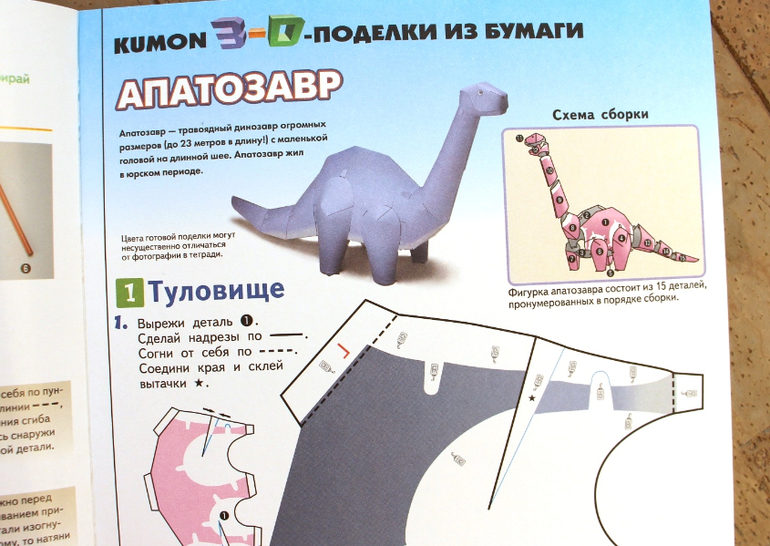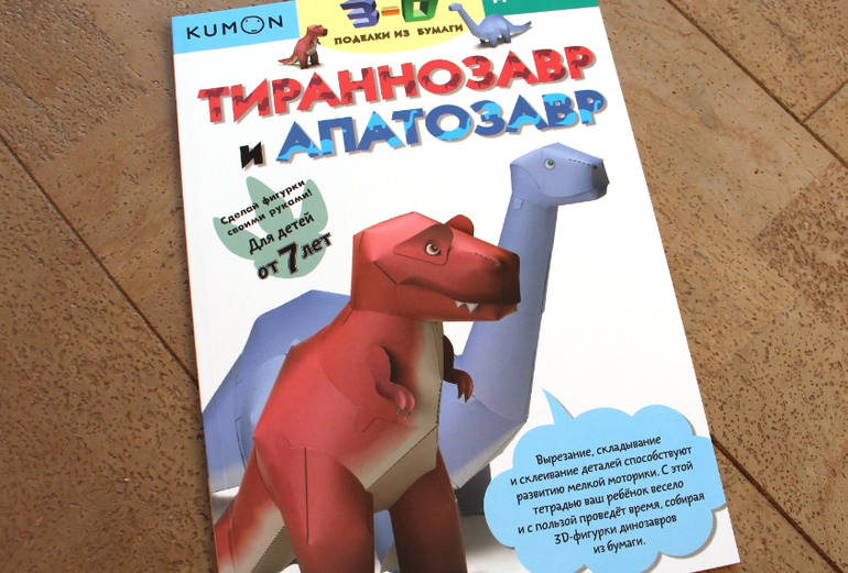 Тираннозавр и апатозавр. Kumon. 3D поделки из бумаги.