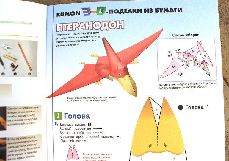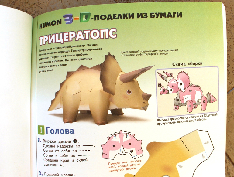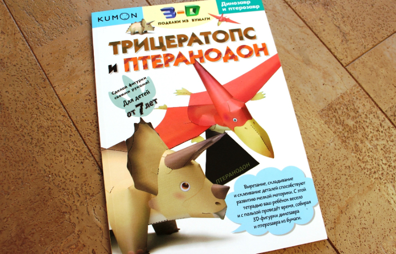 Kumon. 3D поделки из бумаги. Трицератопс и птеранодон.