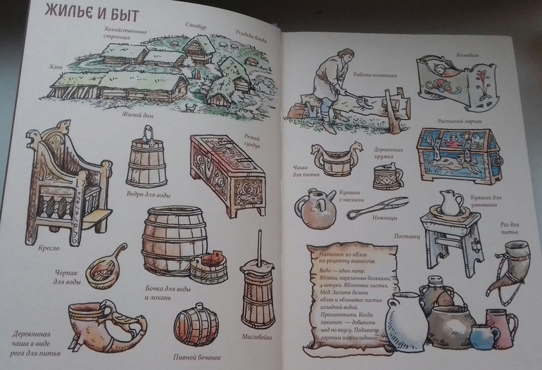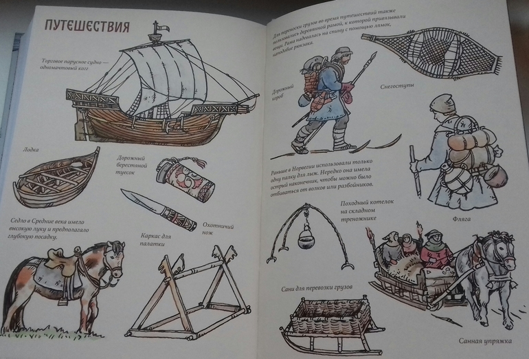 Кстати, о сносках. Кроме них в книге есть своеобразные комментарии в рисунках. Если встречается незнакомое слово, обозначающее конкретный предмет, можно посмотреть на его изображение, нарисованное автором. И не мудрить, представляя непредставляемое. Вот прямо жирнющий плюс за это книге!