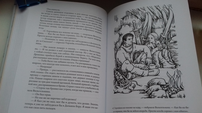 А дальше, странице эдак к сотой( опять же, как в любом уважающем себя историческом романе) случается страшное! Найден мертвым отец Вильгельмины! Он погиб страшной смертью, был загрызен волками...Но вот только дочка ни секунды не сомневается, что отец ее жив, а похоронен вместо него совсем другой человек. А тут еще является ее дальний родственник Стюрмир, утверждающий, что всё состояние Стурлы теперь принадлежит ему в уплату долга, который якобы был перед ним у отца Вильгельмины. Плохо бы пришлось беззащитной девушке, не будь у нее такого друга, как Торлейв. Вместе начинают они полный опасностей, сражений и определенной доли мистики путь к далекой башне, где заточен Стурла...