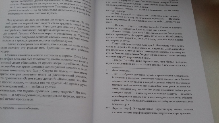 Норвежская природа, быт и нравы людей, ее населяющих, особенности их отношений именно в эту историческую эпоху - всем этим до краев наполнена книга. Древние верования скандинавов, прекрасно уживающиеся с верой в Христа, - еще одна ее грань. Рассказы людей о волшебных существах органично вплетаются в повествование, сближая мистику и реальность, сплетая эти нити в единое полотно. Голова тролля, Хюльда, Белая Волчица...Неужели это всё правда? Неужели Белая Волчица - это действительно...тссс! Это тайна))