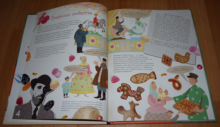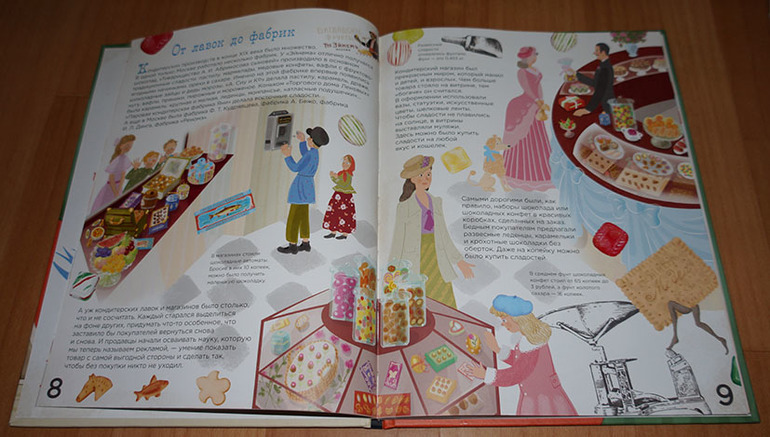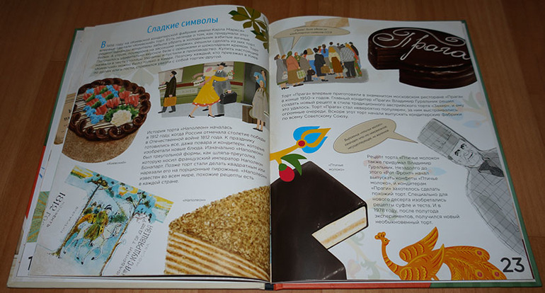 о сортах шоколада, об истории приготовления варенья в России, о видах и стандартах мороженого, о коллекциях фантиков и о сладких кондитерских династиях России.