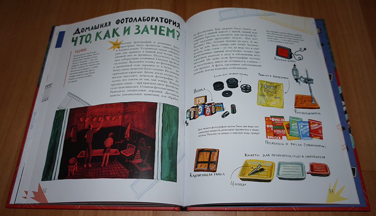 Есть в книге и ностальгический разворот о домашней фотолаборатории. С папой мы печатали черно-белые фотографии, с мужем проявляли слайды. :)