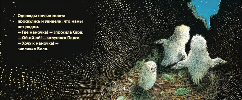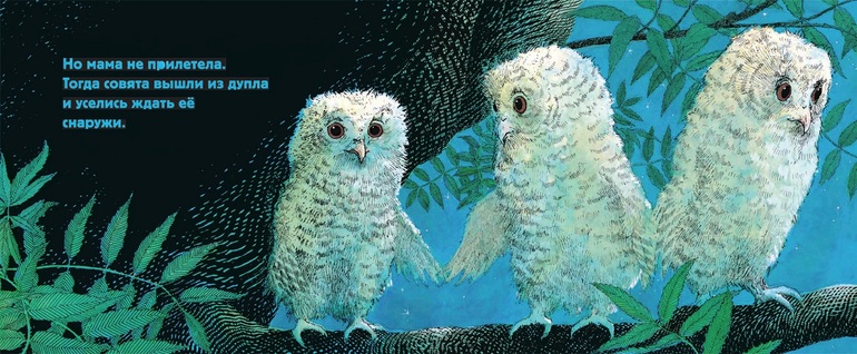 Где-то в тёмном лесу на дереве сидят трое маленьких совят.