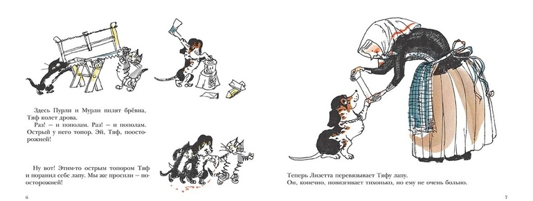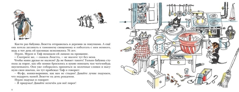 Старушка Лизетта живёт в домике на опушке леса. Живёт не одна, а с двумя кошками Пурли и Мурли, собакой по кличке Тяф, курочками, утками, кроликами и козой. Лизетта заботится обо всех своих мохнатых и пернатых друзьях, и те в благодарность решают устроить ей в честь дня рождения настоящий праздник с именинным пирогом и красочным представлением.