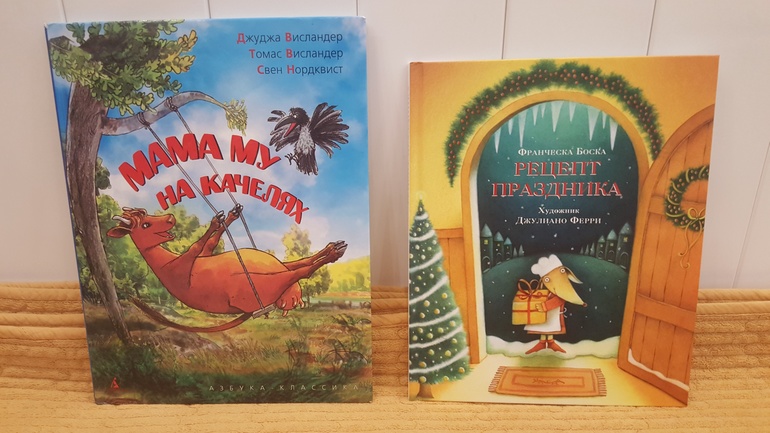 "Мама Му" очень симпатична Кристине. Книжка "Рецепт праздника" понравилась нам обеим, очень хороша к подборке из зимних и новогодних книг.
