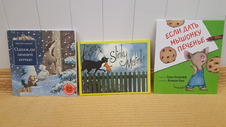 Тут наши старые любимчики, интерес к которым не угасает до сих пор. Книжка "Если дать мышонку печенье" - ну прям про мою неугомонную дочь.