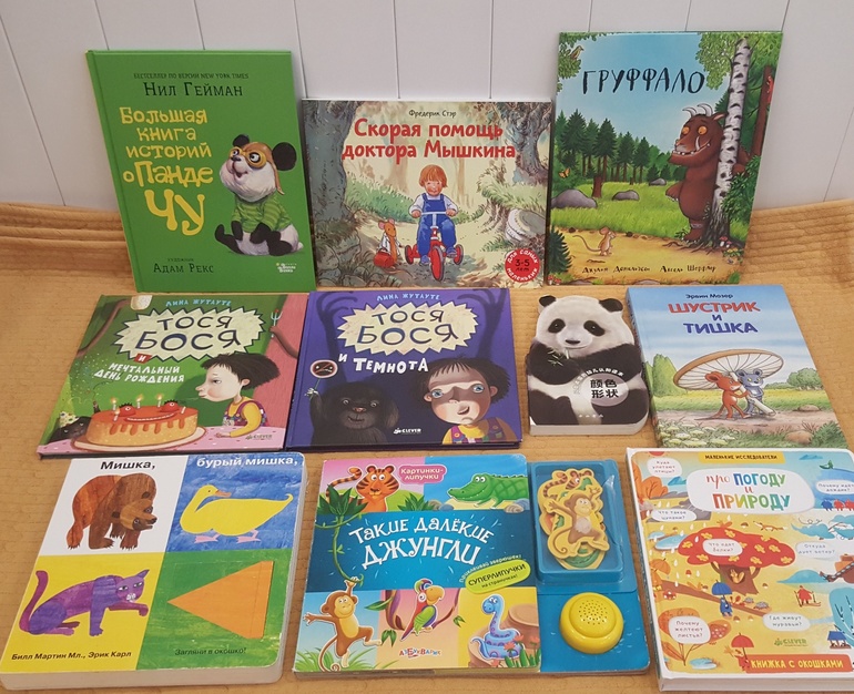 Книга о панде Чу Кристине очень нравится, но более актуальна она была бы чуть раньше. В восторге от книжки "Скорая помощь доктора Мышкина", "Груффало" читали и обыгрывали с помощью театра теней. "Тося-Бося" - это как раз то, что абсолютно не соответствует моему вкусу, но очень любимо ребёнком. Истории про Шустрика и Тишку раскрываются для нас всё ярче и ярче.