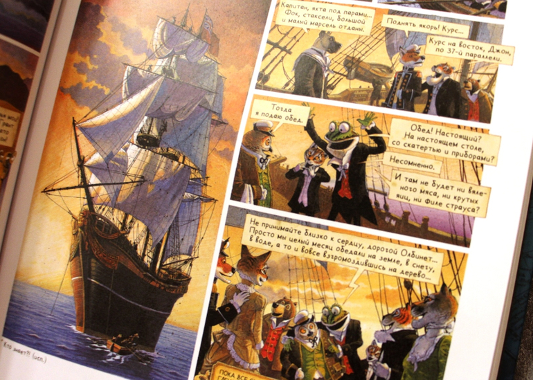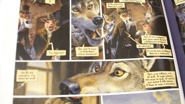 Спасибо! Интересно было посмотреть картинки и почитать отзыв)) Вообще не поняла, из-за чего такое горячее недовольство. У каждой книги свое предназначение и свой читатель. Когда-то читала статью, где ругали книжки-игрушки, потому что они не прививают любви к чтению. Конечно, не прививают! У них цель совсем другая. А графические романы - это вообще особый жанр, на стыке литературы и изобразительного искусства. Мне не очень они нравятся. Но это только моё мнение. И я знаю массу людей, которые увлекаются этим жанром. Люди умные, образованные, увлеченные. И читающие далеко не только "комиксы". Я уважаю их мнение, я уважаю вкус любого человека. А иллюстрации здесь и правда шикарные. Но на мой вкус))) зверей бы людьми заменить))))