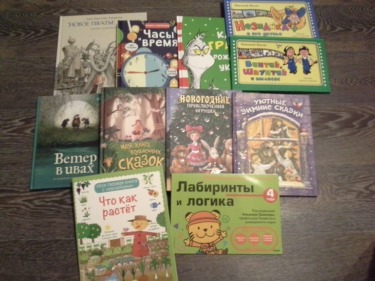 Что получилось у меня: Новое платье короля - 225, Часы и время - 600, Как Гринч рождество украл - 175, Незнайка и Винтик по 124, Ветер в ивах - 135, Моя книга волшебных сказок - 175, Новогодние приключения игрушек - 150, Уютные зимние сказки - 115, Что как растет - 65, Лабиринты и логика - 140.