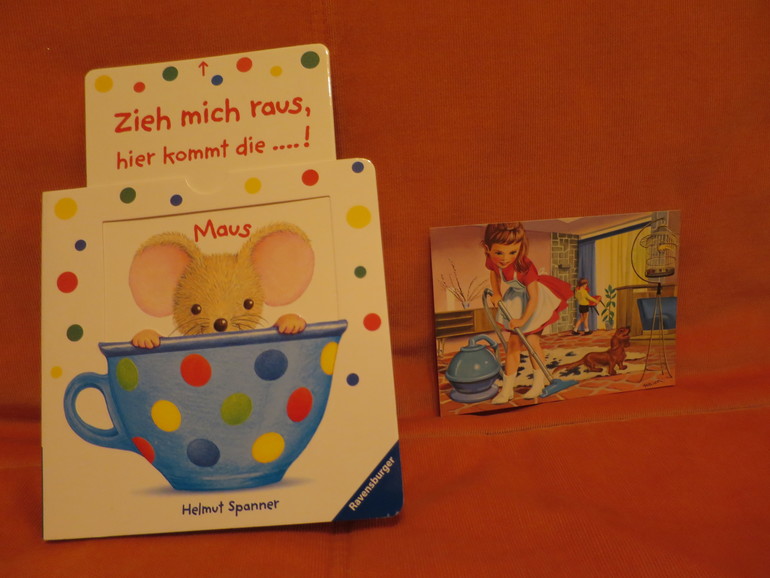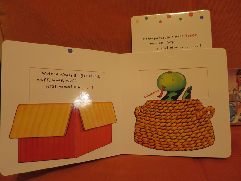 Книжка для малышки с двигающимися картинками - очень занимательна... Я даже с опаской двигала картинку в "тайной комнате", что там вытащу, прежде чем старшая доча полюбопытствует, но обошлось: там оказался медвежонок)))