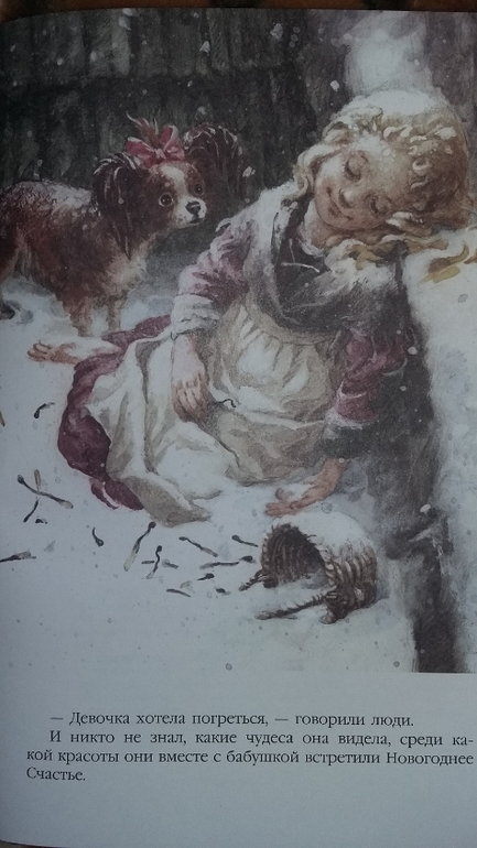 Девочку со спичками тоже задали читать, долго я переживала, как воспримет. Всплакнула немного, но вроде больше отложилось у нее, что счастливый, хороший конец у сказки. Тема смерти не напугала. С такими иллюстрациями и не могло быть по-другому.