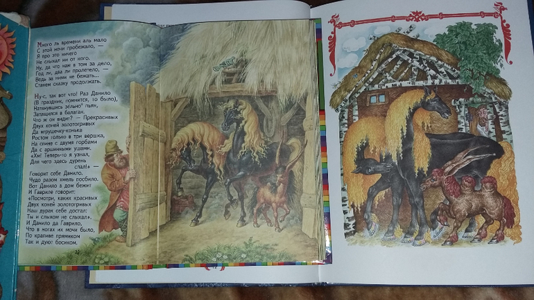 Конька-Горбунка дочка легко прочитала, думаю потому, что и аудио не раз слушала и мультик видела. Слова по тексту вопросов особо не вызвали. Сказка эта ей нравится.