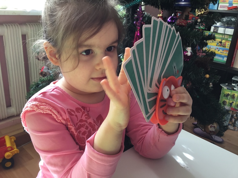 Каждый день во что-нибудь играем. Сегодняшнее утро началось с двух джуниоров- "каменный век" и "клуэдо". Если надо быстренько раскинуть партию-другую, играем в "уно" и "10 свинок". Они сейчас самые любимые карточные игры. На зимние каникулы достану "Спящих королев". С 4 лет хит номер один-"Коварный лис".