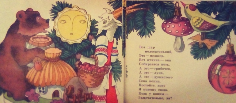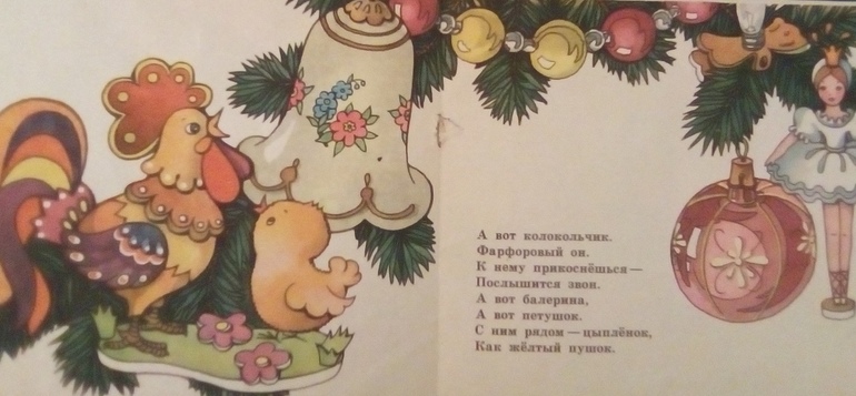 Ну и напоследок хочу показать ещё одну старинку из моего детства, последняя страничка утеряна, пришлось текст просто дописать. Не знаю, переиздавали ли эту книжку, мне кажется, эта незамысловатая история про елочные игрушки была бы интересна и современным ребятишкам, она заставляет внимательнее, с большим интересом приглядеться - какие же новогодние игрушки украшают новогоднюю красавицу елку: