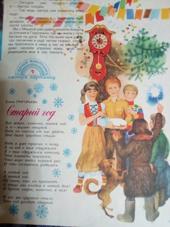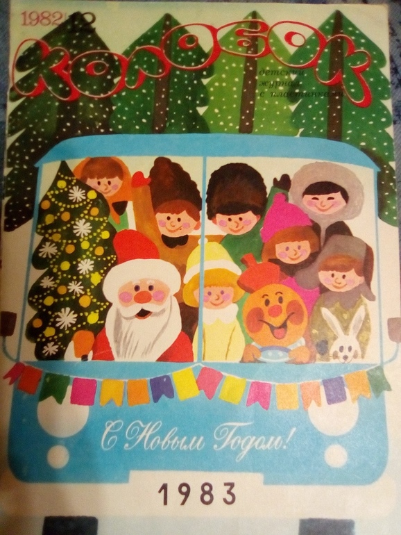Когда я была маленькой, мне приходил журнал "Колобок" с пластинками внутри. Помню эти тоненькие голубые пластинки, которые я слушала на стареньком проигрывателе. Всего один номер "Колобка" есть у меня сейчас, конечно, без пластинок. Но я очень рада, что это новогодний номер. Вот новогодние иллюстрации из него: