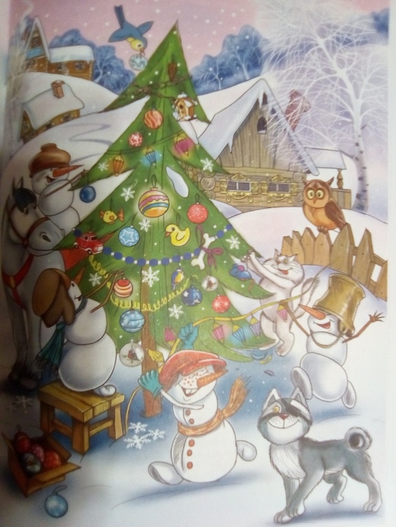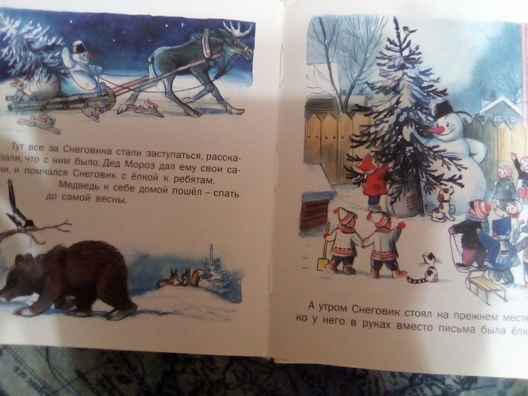 А в сказке Сутеева "Снеговик-почтовик" снеговик сам принес не только елочку, но и мешок с подарками: