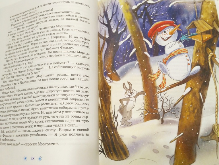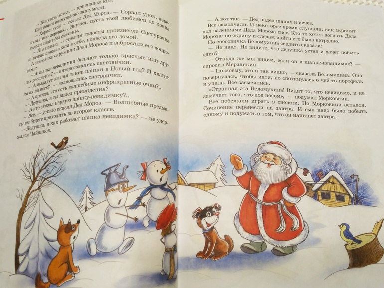 Все про Дедморозовку - эту книгу читали вместе в 5.5 лет, в прошлом году дочь читала её сама. В этом году с начала декабря она мечтает её прочитать, но у нас есть библиотечные книги, которые надо сдавать. Поэтому начала Аня читать Дедморозовку на днях, и как обычно буквально глотает книгу!! Забавные снеговики и снеговички, каждый со своим характером, предпочтениями, попадают на разные ситуации, узнают , что такое хорошо и что такое плохо, дружат, ссорятся, мириться да ещё и в школе учатся.