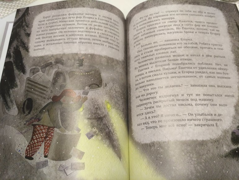 Увидели они и стопки писем на разном дубовом столе, узнали о волшебных очках Деда Мороза, в которых письма читаются быстро быстро..