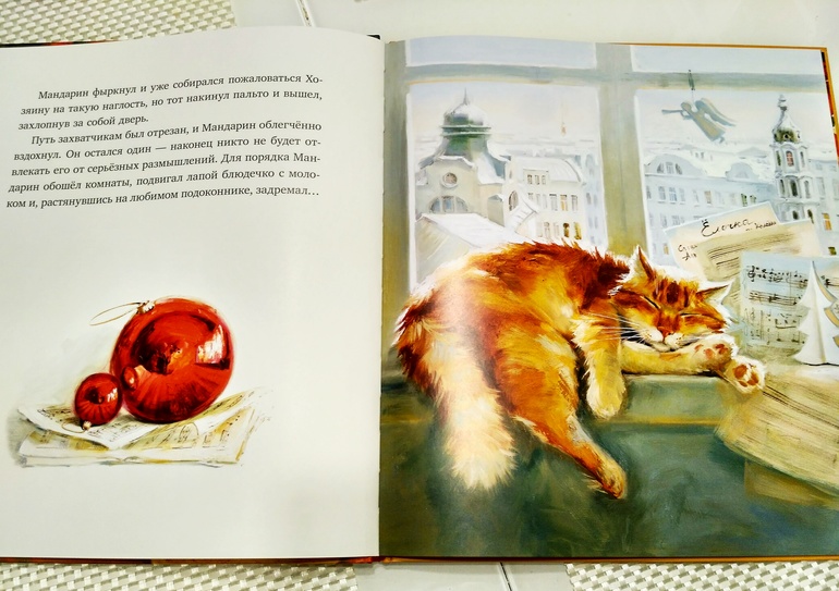 В этом году совсем иначе восприняты наши праздничные книги про котов, то ли это от того, что у нас появилась кошка (Аня выпросила в сентябре котёнка), то-ли доросли мы до этих историй, поняв их глубину.. Елка, кот и Новый год читали медленно, обсуждая повадки и мысли рыжего красавца Мандарина.
