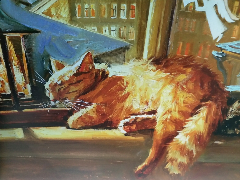 Он и ведет себя как котенок))) кинь ему скомканую бумажку, будет скакать за ней аки слон))))) но мстит как настоящий лев)))) вчера я его не накормила и наругала, а он мн екучу в коридоре))))) получите))))))) А художник Павлова, да)