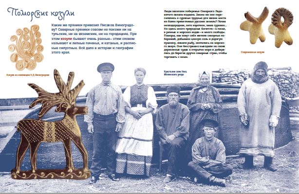В книге много сведений о первых исследователях пряничного искусства - И.А. Голышеве, архитекторе Н.Д. Виноградове с его знаменитой коллекцией, в которой были и резные пряничные доски, и сами пряники - тульские, калужские, мстёрские, вяземские, а также архангельские козули.