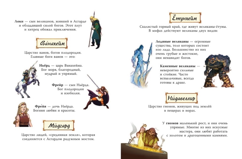 Скандинавские мифы прочно вросли в современную культуру. В их сюжетах черпал вдохновение Дж. Р.Р. Толкиен, написавший историю Средиземья, Рихард Вагнер сочинил по ним цикл опер "Кольцо нибелунгов", а легендарный Стэн Ли увековечил их мотивы в супергеройских комиксах, по которым снято столько фильмов. Но всё это - только фантазии на тему. Настоящие секреты скандинавских героев и богов хранятся в первоисточниках - «Старшей Эдде», «Младшей Эдде» и «Саге о Вёльсунгах». Главные из них просто и увлекательно пересказаны и блестяще проиллюстрированы в этой книге. Зачем скандинавам два царства мёртвых - Нифельхейм и Хельхейм? Куда уходит своими корнями дерево Иггдрасиль? Кому отдал свой глаз бог Один? Откуда взялся знаменитый молот Тора, Мьёлльнир? Как началась война богов и что такое Рагнарёк? Обо всём этом можно узнать именно здесь!
