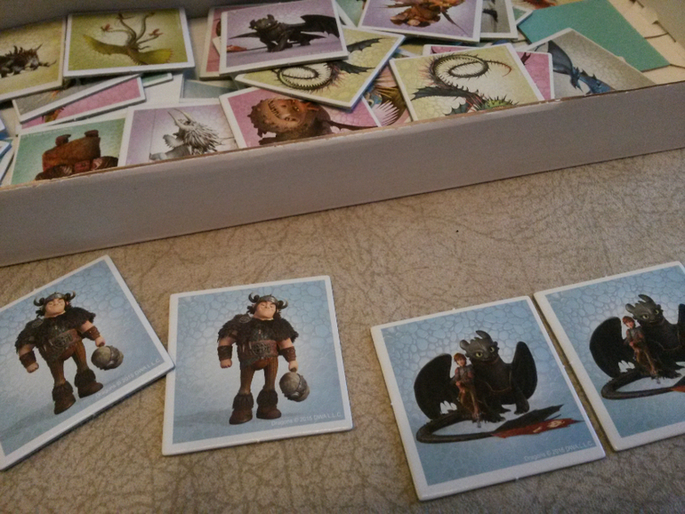 Илюха у меня большой фанат мультфильма Как приручить дракона. Леночка нам мемори с героями этого мультфильма подарила) Сплошной восторг)))))))