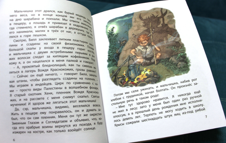 Книга замечательно иллюстрирована - персонажи очень выразительные, иллюстрации сами уже интересные. Шрифт крупный.