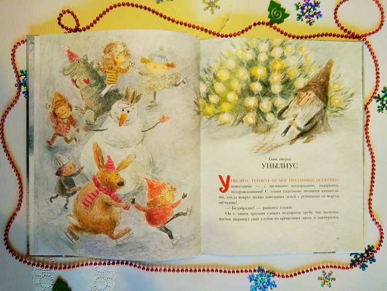 Ну какая же это чудесная, добрая, праздничная сказка! Задумка довольно проста и не отличается новизной - герои книжки спасают Новый Год. Но вот интерпретация очень красивая и нетривиальная!