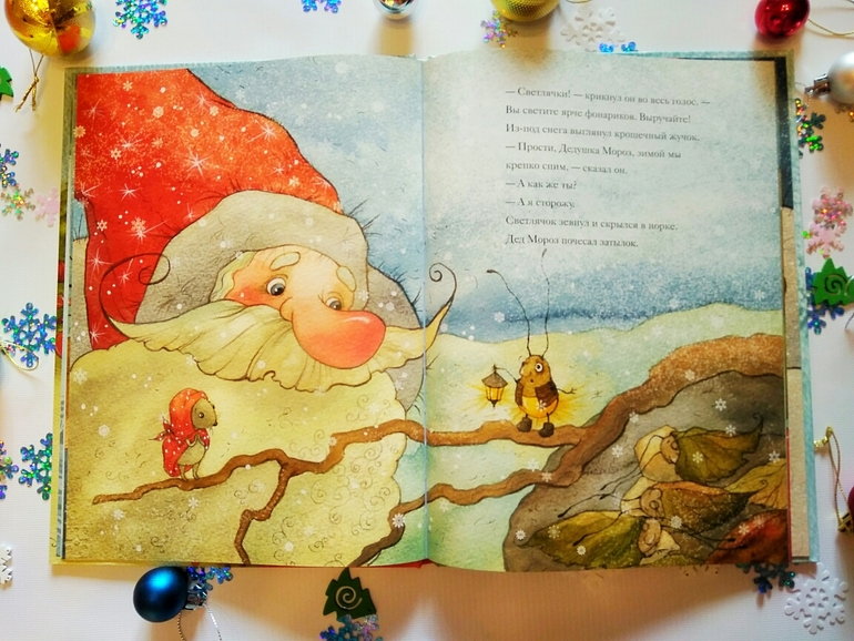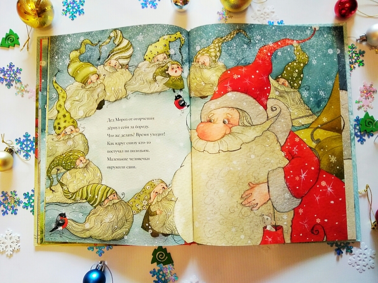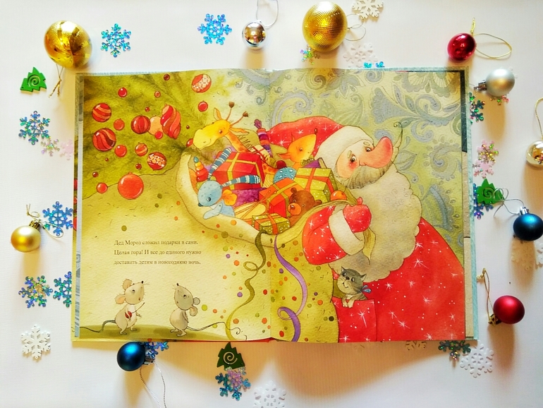 Книга Елены Михалковой Зимняя сказка на ночь (она на первом фото) Не знаю, от чего такое название))) Это история о том, как Дед Мороз собирался уж ехать раздавать подарки детям в новогоднюю ночь. Но вдруг началась вьюга, тучи закрыли все небо и стало так темно, что дороги никак не разобрать! Бедные детки! Они ведь могут остаться без подарков! Дед Мороз стал искать - кто бы ему помог. Но никто не смог справиться с тучами. Ни светлячки, ни полярная сова, ни лисичка, ни медведь. И только маленькие гномы подбросили в небо свои волшебные камешки, стало светло, и Дед Мороз смог отправиться в путь. Как видите, сюжет очень незамысловатый. Тем не менее, книга очень милая и добрая. И чудесные иллюстрации Виктории Кирдий добавляют ей волшебства. Подойдет для самых маленьких читателей, 1-2-3-х лет. Или начинающих читать самостоятельно. Кстати, если у вас есть вот такая Чудеса под Новый год , то и Зимняя сказка на ночь вам тоже обязательно понравится!