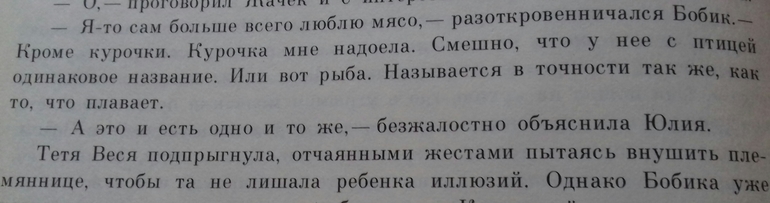 Я книги детские заранее не читаю, и именно на этой книге я всё-таки решила - а может зря? Вот вы прочитываете детскими книги перед чтением вслух, чтобы вот такие неожиданности не случались? Если читаете заранее и встречаете по ходу сюжета что-то, что вас совсем не устраивает - редактируете, меняете или вот вообще вырезаете из повествования куски, которые не укладываются в ваше мировосприятие? И что именно вы считаете неуместным в детских книгах?