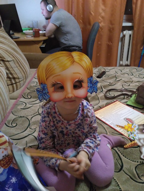 . Такая вот "девочка с косой"))). Мы даже разыграли сказку про колобка. Я была колобком, а Олеся всеми остальными.