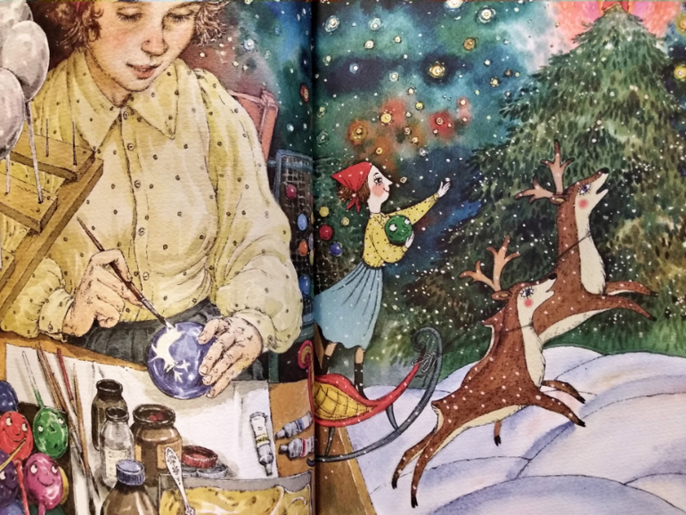 Обажаем эту книгу. В этом году искали с дочкой в магазинах большой красный шар с белой снежинкой на боку.