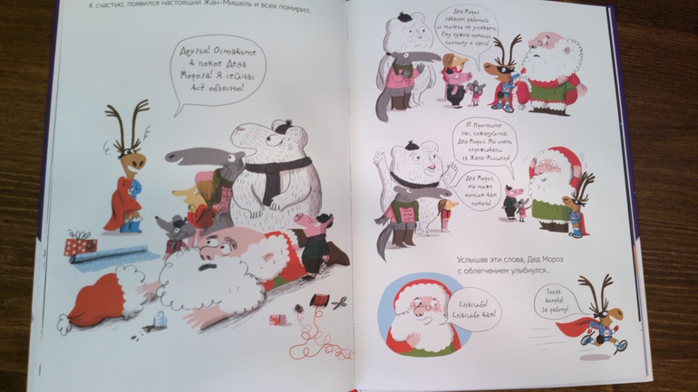 Потешные иллюстрации, смешная история не оставят вас равнодушными. Книга подойдет для предновогоднего чтения. Читается за один вечер (мы читали перед сном, как раз хватило).