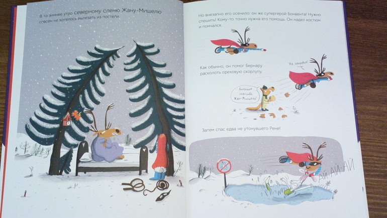 Многие дети любят волшебные истории, из них ещё какая-то часть любит истории про супергероев, в этой книге есть и волшебство и супергерой- олень Жен-Мишель.