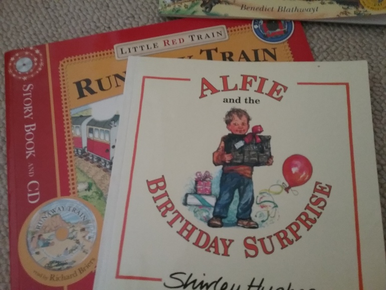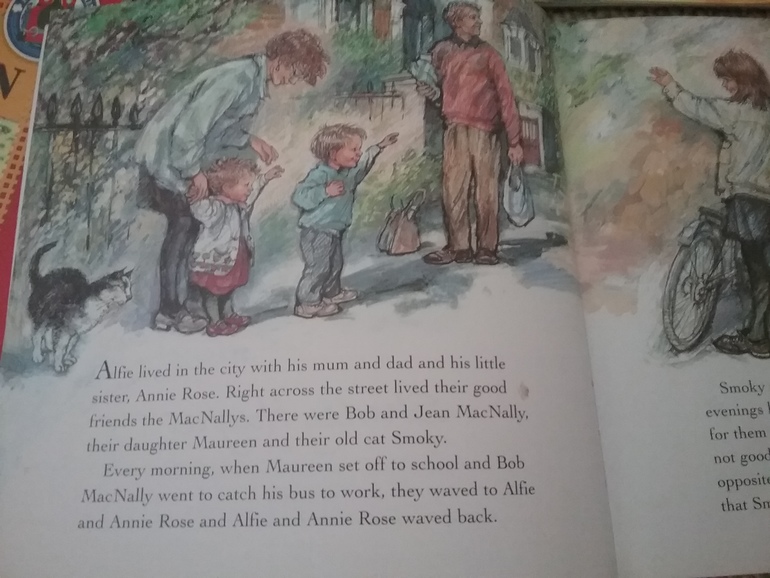 Вот я купила набор книг про мальчика Alfie. Мне очень понравилось, язык хороший и содержания, классическая детская книга. Мише тоже понравилось, тк он себя с ним мог ассоциировать: у Альфи есть младшая сестра, как и у нас, кот как и у нас.