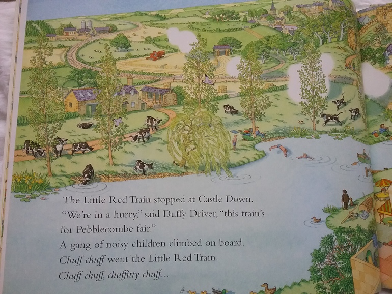 И купила набор про Little red train, Duffy the engine driver Мише очень понравился, перечитываем по нескольку раз. Язык хороший. А какие там замечательные иллюстрации. Я просто каждый раз любуюсь, столько всяких мелочей на картинке, если ребенка попросить только картинку можно обсуждать минут 5-10 :) Завтра добавлю фото, тк сейчас тени и блики будут. А иллюстрации просто шедевр ( на мой вкус, конечно)
